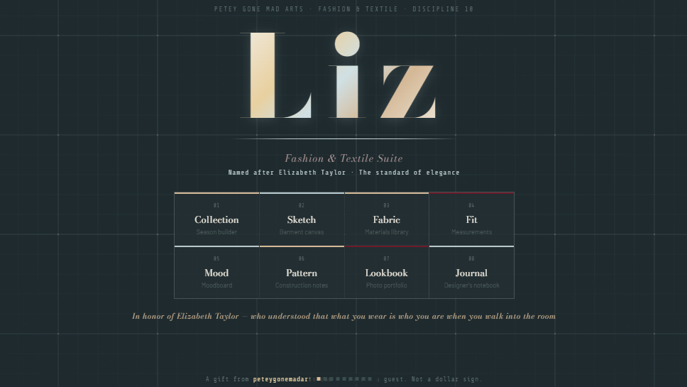 From the girl taking in seams at twelve, to the designer dressing the women who define their era — Liz covers the full distance.